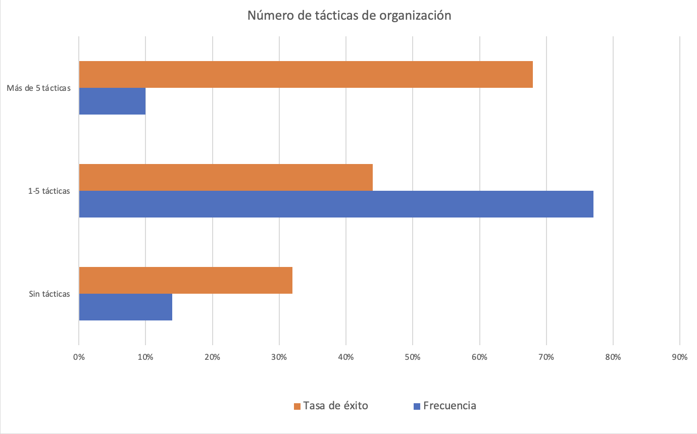 Más tácticas equivalen a un mayor porcentaje de victorias