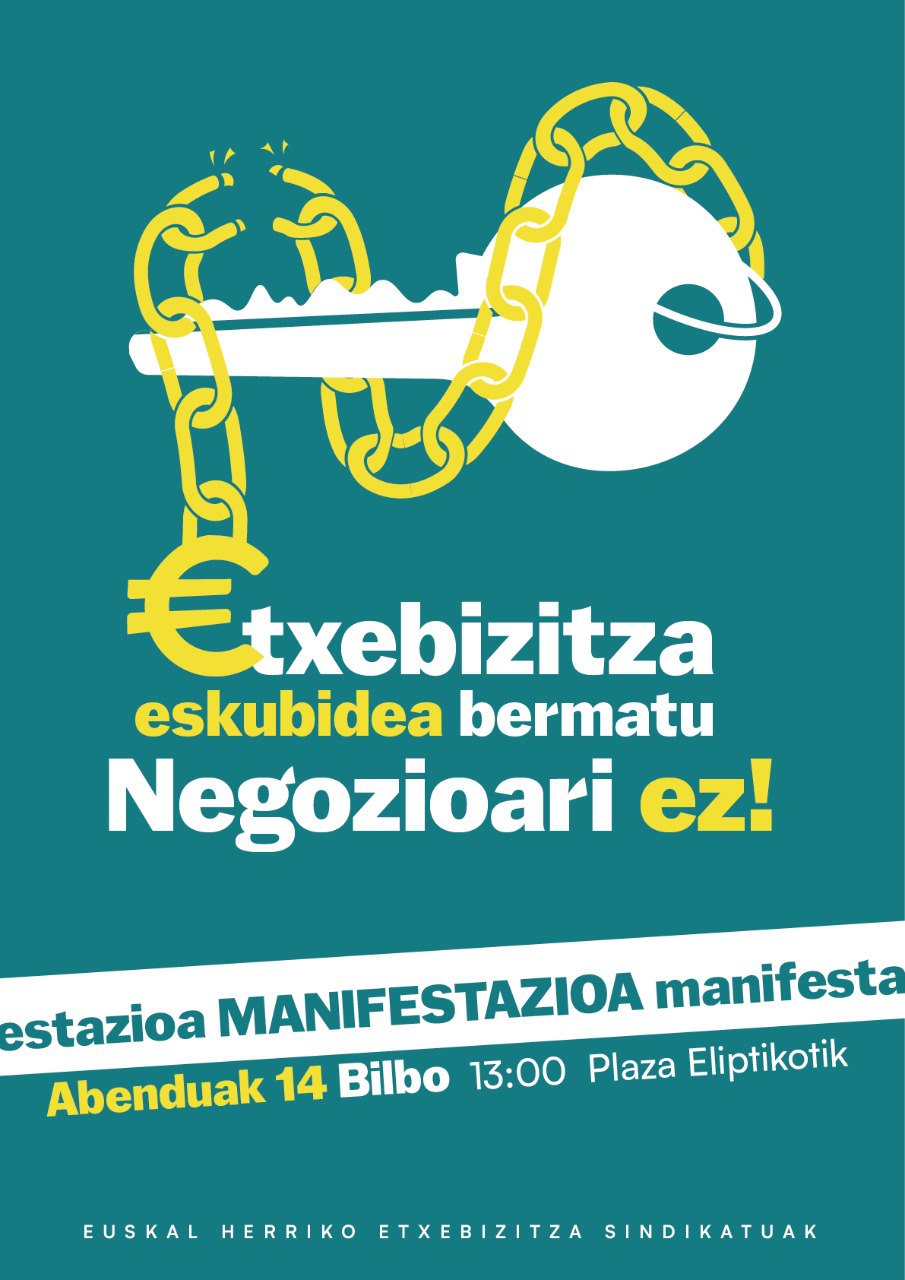 - Ekitaldia abenduaren 14an Bilboko Plaza Eliptikotik hasita “Etxebizitza eskubidea bermatu, negozioari ez!” lelopean egingo dena