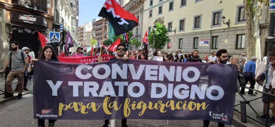 CNT sindikatuak figuranteen, aktoreen, aktoreen eta teknikarien eskubideen alde borrokatzen jarraituko du, lanaldi bakoitza, eskubide bakoitza eta esfortzuz irabazitako euro bakoitza errespetatua izan dadin.