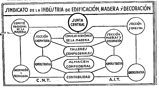 Ezaugarri orokorrak jabetza pribatuaren abolizioa eta komunen ezarpena ziren, gizarte berriaren funtsezko elementu gisa. Industria mailan, produkzio-zentro bakoitzak kontseilu tekniko-administratibo bat izango luke, enpresako plantillak asanbladan izendatua. Beste zentro batzuekin koordinatuko ziren industria-federazioen bidez – 1936an oso gutxi garatuta zeuden –. Deskribapenean ez dute argi uzten sindikatuek une horretatik aurrera izango duten rola, eta komunismo libertarioa lortu denez, desegin egingo liratekeela ulertzen da.
