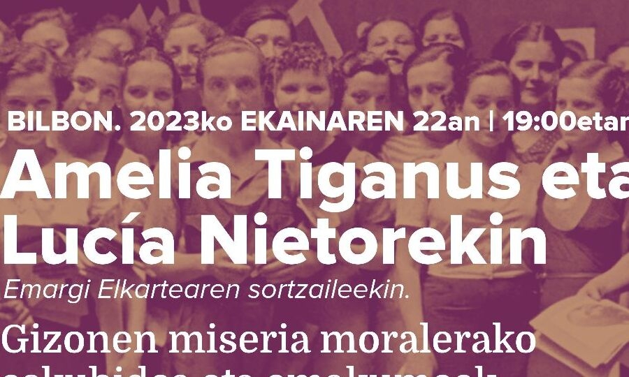Emakume Askeak eta Emargi elkarteak, CNTrekin batera, hitzaldi bat antolatu dute La Bolsa eraikinean (Pelota kalea, 10, Bilbo). Amelia Tiganusek eta Lucía Nietok, Emargi Elkartearen fundatzaileek, prostituzio-egoeran dauden emakumeei eta horren inguruko kontzeptuei buruzko hitzaldia emango digute.